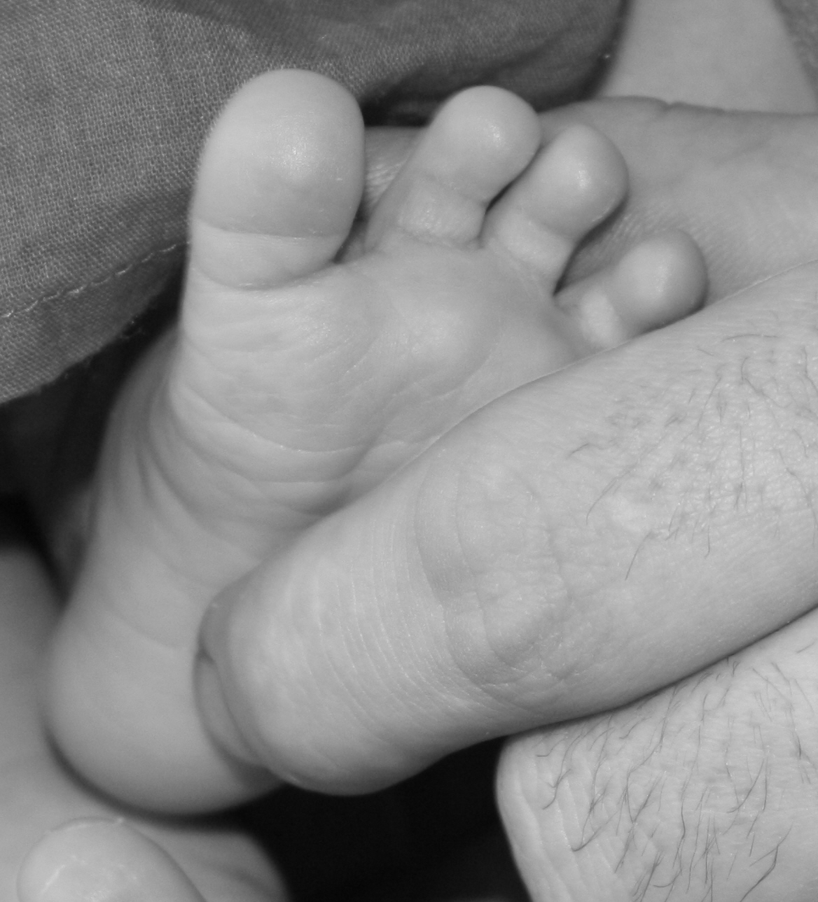 The babys foot against her fathers fingers really suggests how little this girl is.